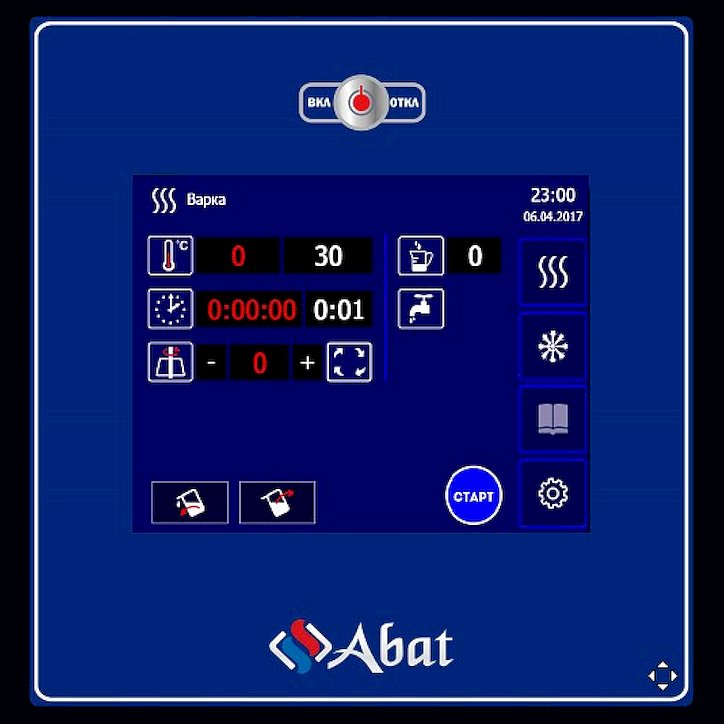 Модель оснащена панелью управления с электронным TFT-экраном, пультом программного управления и сливным краном, позволяющим производить слив готового продукта без опрокидывания.