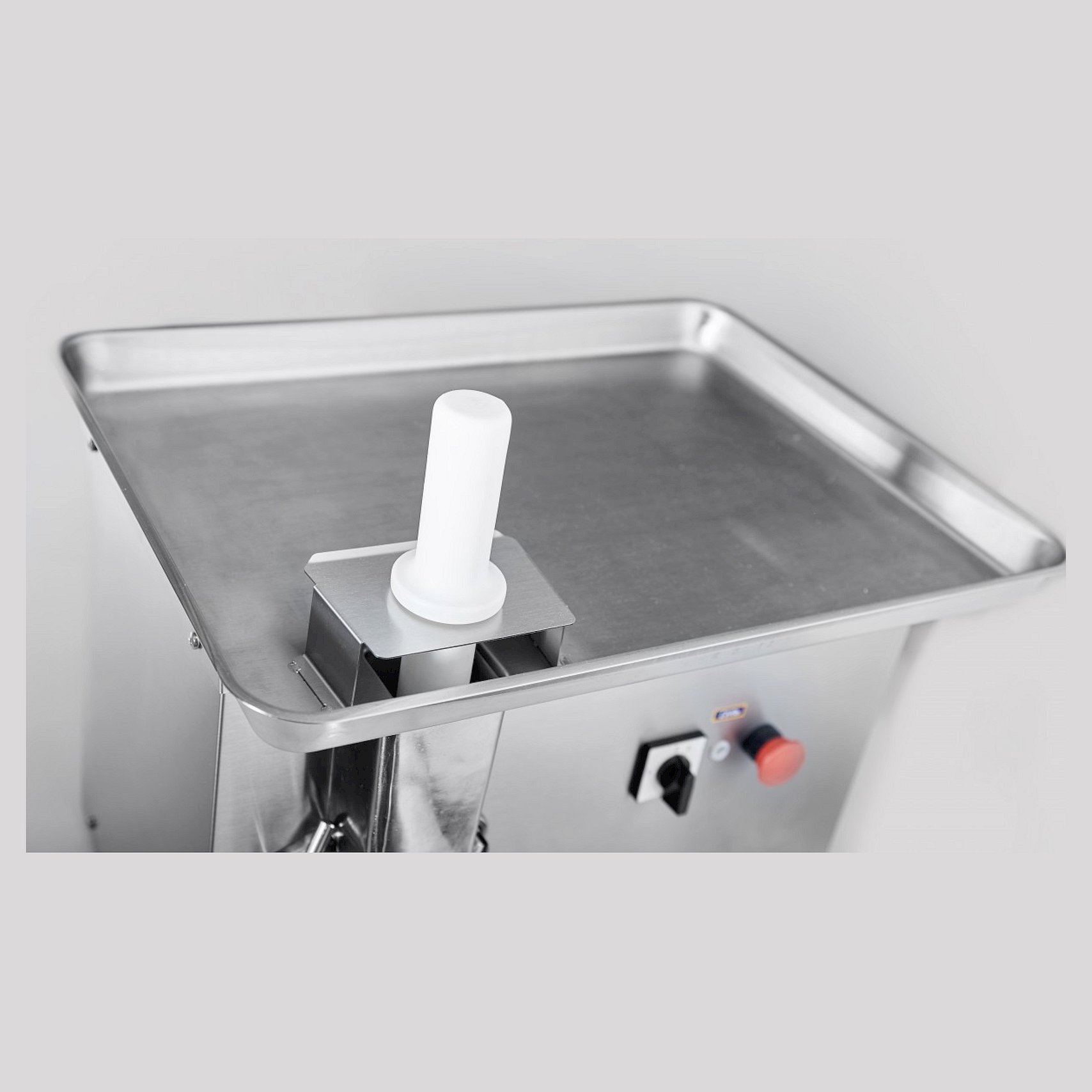 Модель оснащена регулируемыми по высоте ножками. Корпус, шнек, зажимная гайка выполнены из высококачественной нержавеющей стали. В комплект поставки входят нож подрезной, двусторонний нож с крупной решеткой и двусторонний нож с мелкой решеткой.