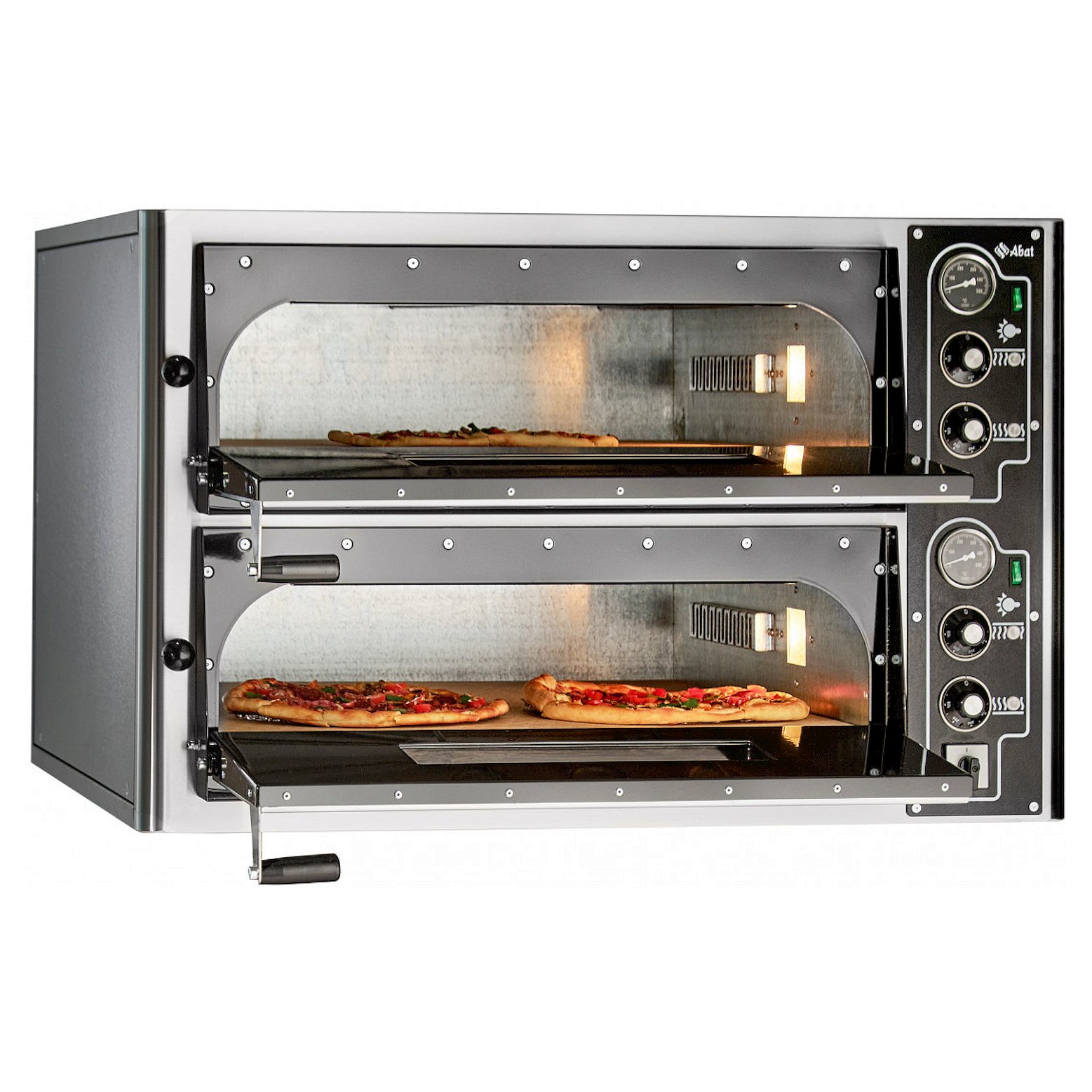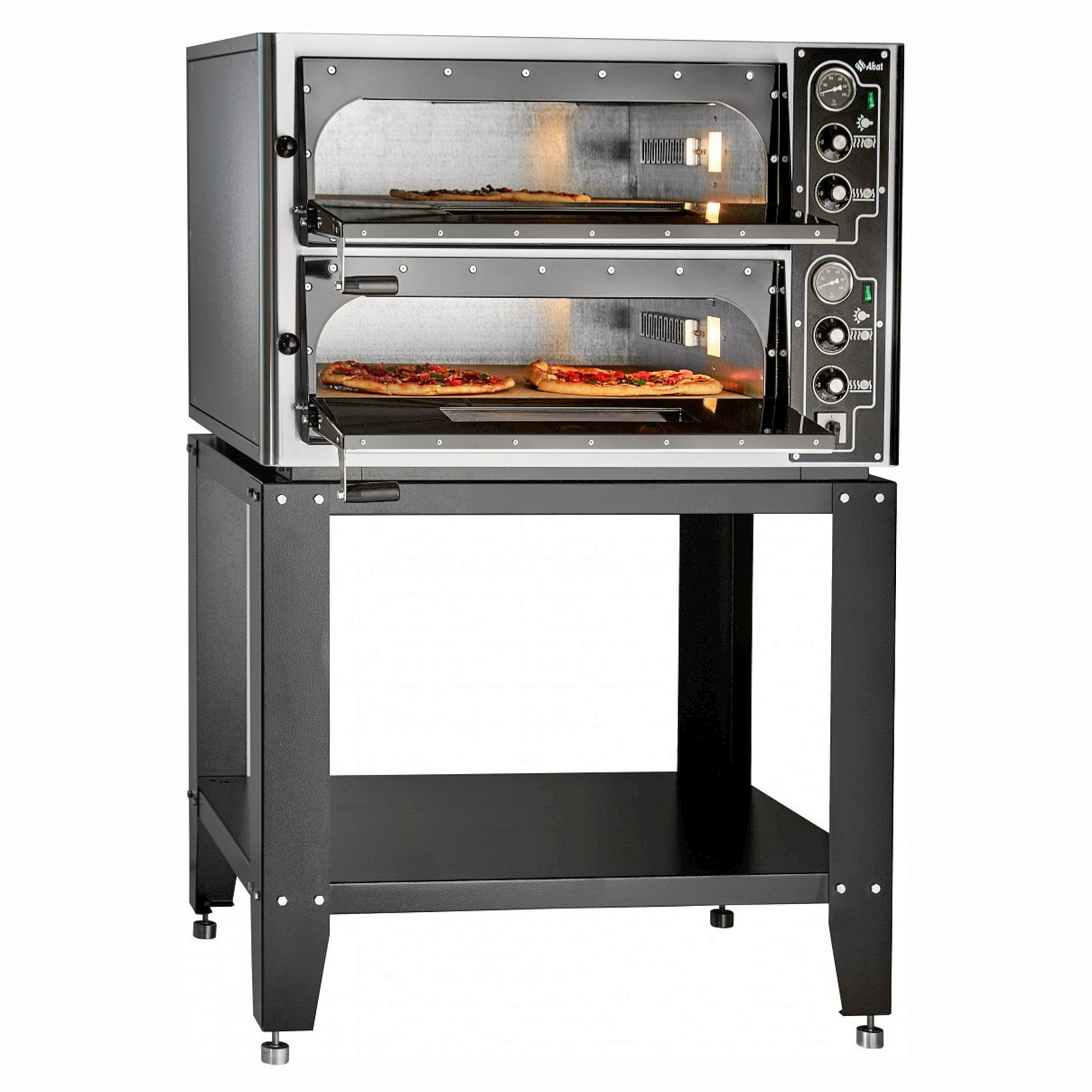 Двухкамерная печь для пиццы Abat ПЭП-4х2 применяется в торговых точках и заведениях общественного питания для изготовления хлебобулочных изделий или пиццы.