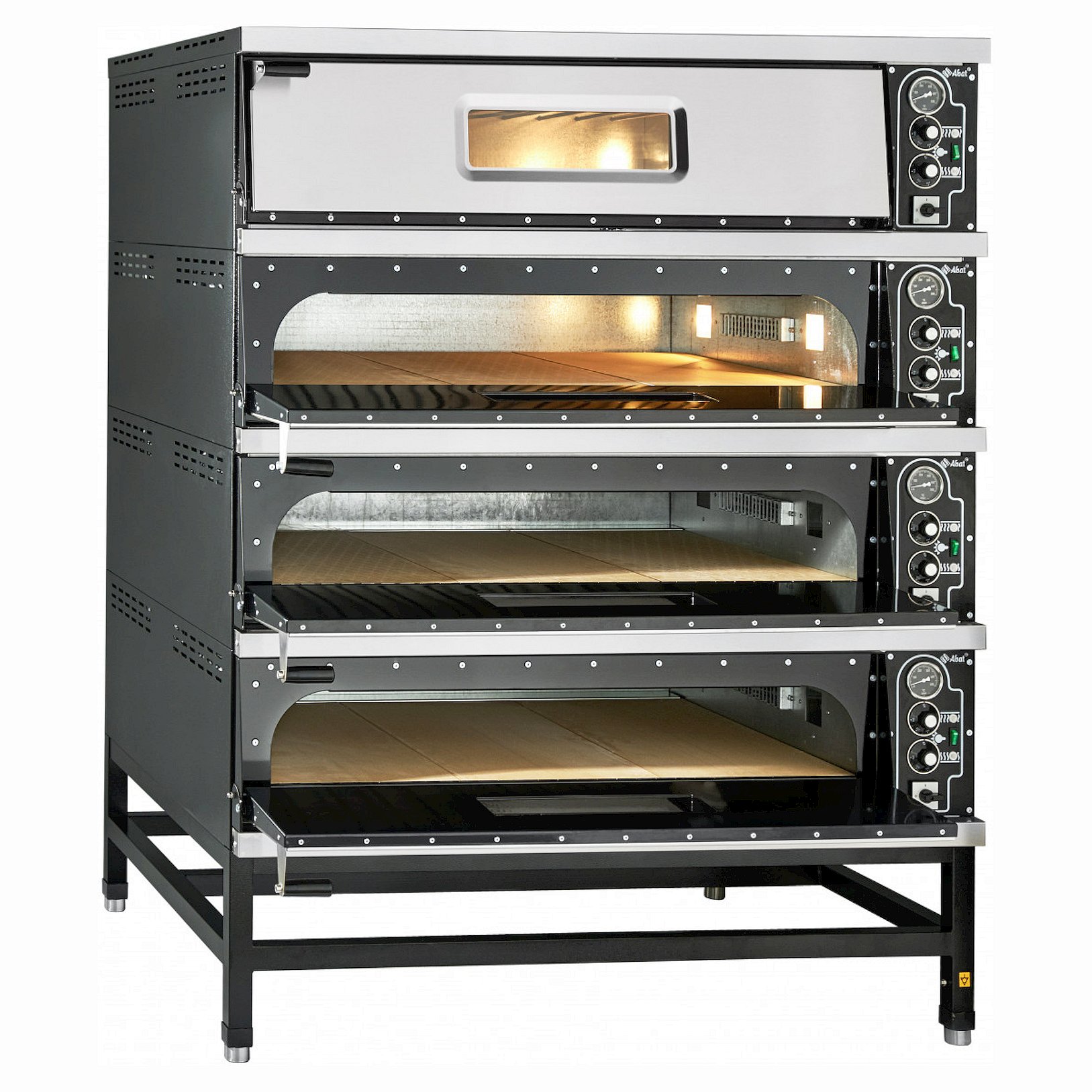 • дно рабочей камеры печи для пиццы Abat ПЭП-6 изготавливается из «шамотного» камня и состоит из двух жаропрочных кордиеритовых плит, толщина которых составляет 15 мм