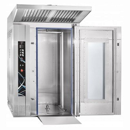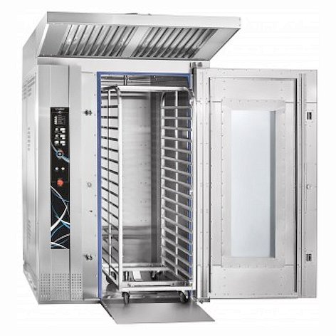• После завершения процесса приготовления поворотная рама автоматически устанавливается в положение для выкатывания тележки-шпильки