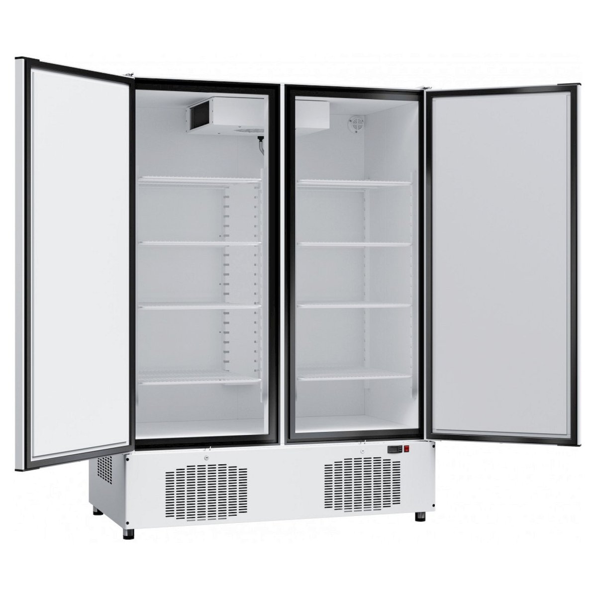 Модель оснащена подсветкой, дверным замком, 8 полками-решетками и регулируемыми по высоте ножками.