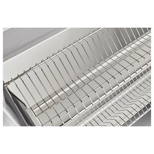 Количество одновременно загружаемых тарелок - 140 штук. Ванночки под каждой кассетой для сбора стекающей с тарелок жидкости. Все элементы изготовлены из высококачественной нержавеющей стали. Регулируемые по высоте ножки с резиновыми вставками.