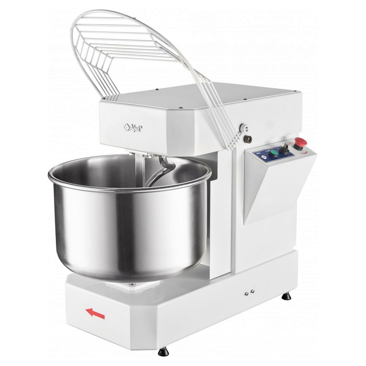Предусмотрен реверс дежи для удобства и освобождения и извлечения остатков теста. Имеется возможность замеса крутого теста общей массой не превышающей 30% от нормы по загрузке обычного дрожжевого теста. Производительный двухскоростной электродвигатель с предусмотренной производителем термозащитой управляемый программируемой электронной панелью имеющая таймер на каждую из двух скоростей. Корпус изготовлен из прочной стали с полимерным напылением увеличивает показатель стойкости к химическому и физическому воздействию, комплектующие которые имеют непосредственный контакт с продуктом, а именно нож, дежа, спираль реализованы из высококачественной нержавеющей стали марки AISI 304. Скругленные внутренние углы дежи облегчают гигиеническое обслуживание. В короткие промежутки времени оборудование способно выдавать большой объём готового продукта. Регулируемые по высоте ножки позволят сгладить неровности поверхности.