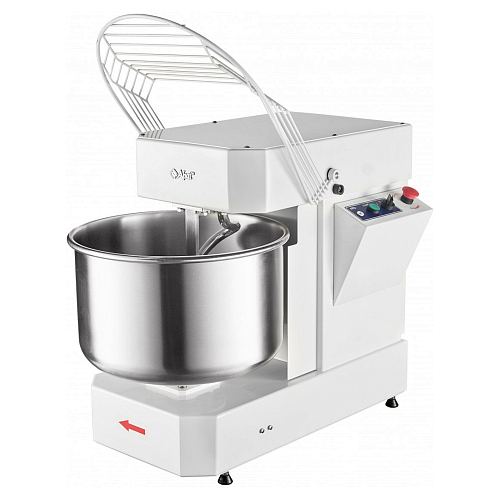 Предусмотрен реверс дежи для удобства и освобождения и извлечения остатков теста. Имеется возможность замеса крутого теста общей массой не превышающей 30% от нормы по загрузке обычного дрожжевого теста. Производительный двухскоростной электродвигатель с предусмотренной производителем термозащитой управляемый программируемой электронной панелью имеющая таймер на каждую из двух скоростей. Корпус изготовлен из прочной стали с полимерным напылением увеличивает показатель стойкости к химическому и физическому воздействию, комплектующие которые имеют непосредственный контакт с продуктом, а именно нож, дежа, спираль реализованы из высококачественной нержавеющей стали марки AISI 304. Скругленные внутренние углы дежи облегчают гигиеническое обслуживание. В короткие промежутки времени оборудование способно выдавать большой объём готового продукта. Регулируемые по высоте ножки позволят сгладить неровности поверхности.