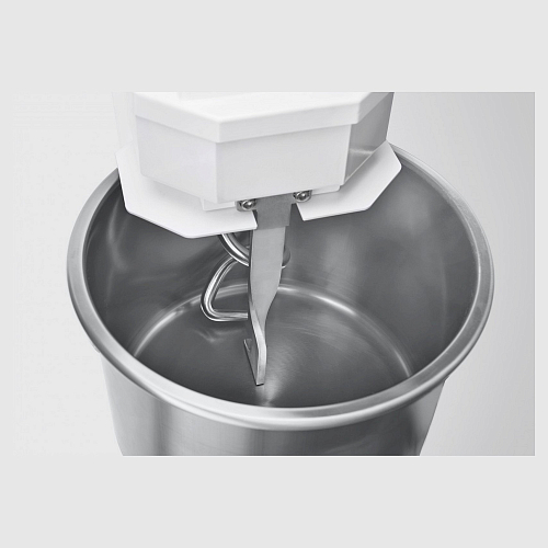 Предусмотрен реверс дежи для удобства и освобождения и извлечения остатков теста. Имеется возможность замеса крутого теста общей массой не превышающей 30% от нормы по загрузке обычного дрожжевого теста. Производительный двухскоростной электродвигатель с предусмотренной производителем термозащитой управляемый программируемой электронной панелью имеющая таймер на каждую из двух скоростей. Корпус изготовлен из прочной стали с полимерным напылением увеличивает показатель стойкости к химическому и физическому воздействию, комплектующие которые имеют непосредственный контакт с продуктом, а именно нож, дежа, спираль реализованы из высококачественной нержавеющей стали марки AISI 304. Скругленные внутренние углы дежи облегчают гигиеническое обслуживание. В короткие промежутки времени оборудование способно выдавать большой объём готового продукта. Регулируемые по высоте ножки позволят сгладить неровности поверхности.
