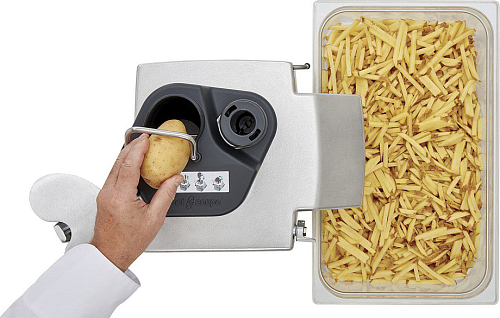 Насадка специально разработана для более удобной и эффективной нарезки картофеля фри. Устанавливается в загрузочную воронку овощерезки. Благодаря принудительной продольной ориентации клубней картофель нарезается по всей длине, соломка фри получается красивой и правильной формы. За счет непрерывной загрузки достигается более высокая производительность. EasyLoader используется с овощерезками серии CL50, CL50 Ultra и кухонными процессорами R502.