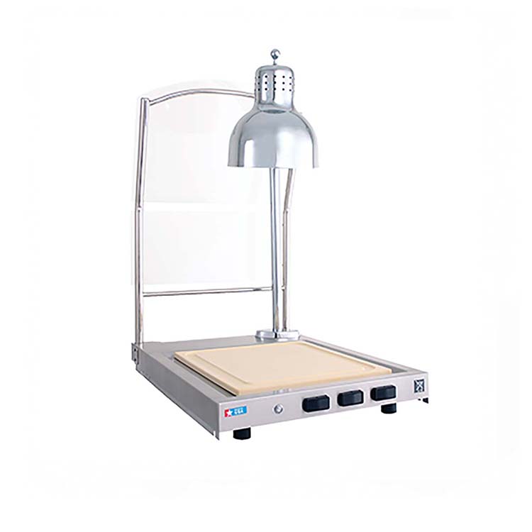 При этом использование подогревателя позволяет в течение длительного времени поддерживать необходимую температуру блюд, которые располагаются на нагреваемой поверхности. Имеется защитный экран и гибкая разделочная доска с удобным стоком для жидкости. Доска может легко сниматься с поверхности станции. Может ставиться на тепловой шкаф модели 500-S или на низкотемпературную печь 500-TH/3.