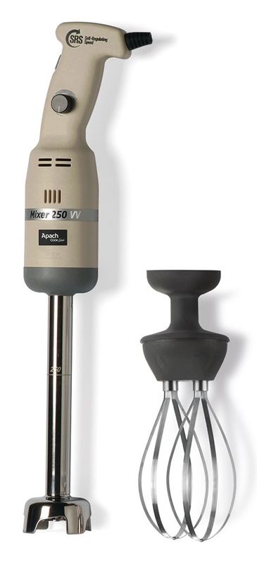 Итальянский ручной миксер Apach AHM250V200C используется для приготовления крем-супов, овощного пюре и приготовления соусов на предприятиях общественного питания, а также он очень прост для использования дома.