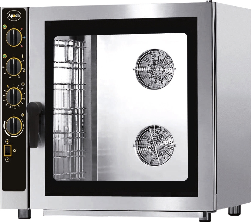 С помощью пароконвектомата Apach AP7M GAS производится обжарка, припускание, запекание, разогрев, выпечка, варка на пару, тушение и многое другое. Этот аппарат сочетает в себе сразу несколько устройств на кухне.
