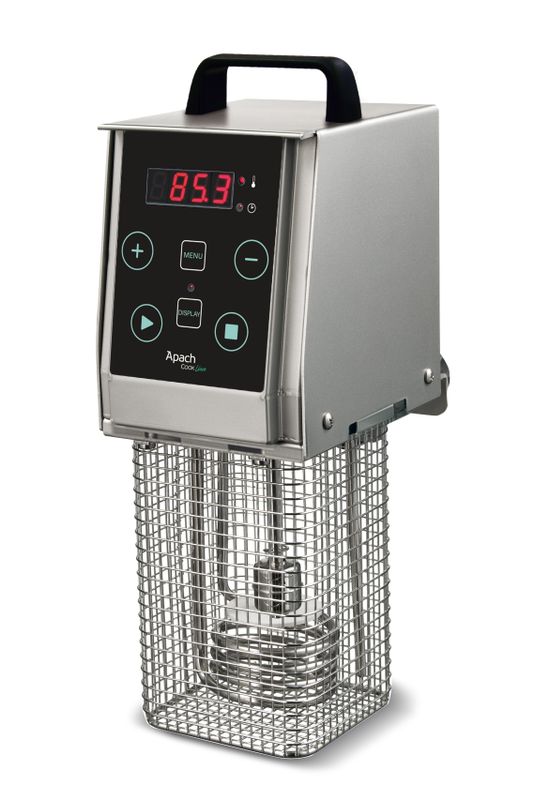 Термостат Apach ASV2 (Sous Vide) предназначен для приготовления широкого спектра блюд по технологии Sous Vide на предприятиях общественного питания и торговли. Модель оснащена дисплеем с индикацией рабочей температуры, зажимом для закрепления на емкости и циркуляционной помпой, которая обеспечивает заданную температуру по всему объему. Корпус выполнен из нержавеющей стали.