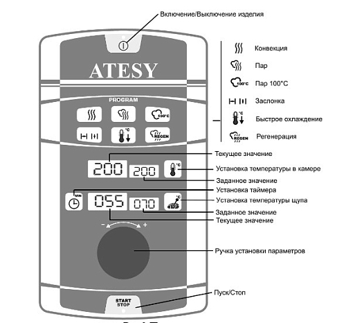 Пароконвектомат Атеси АПК-10-1/1 РУБИКОН серии АПК с электронным управлением, предназначенными для приготовления блюд с помощью конвекции горячего воздуха, пара, а также в условиях пароконвекции – сочетании горячего воздуха и свежего пара.