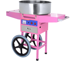 Аппарат для сахарной ваты Airhot CF-3 используется на предприятиях общественного питания и торговли. Прибор установлен на тележку. На металлический бокс конструкции ставится специальная чаша из нержавеющей стали, где тонкие нити накручиваются на палочку и становятся сладкой ватой. Модель проста и удобна в использовании. Корпус выполнен из окрашенной стали, чаша-ловитель - из нержавеющей стали.