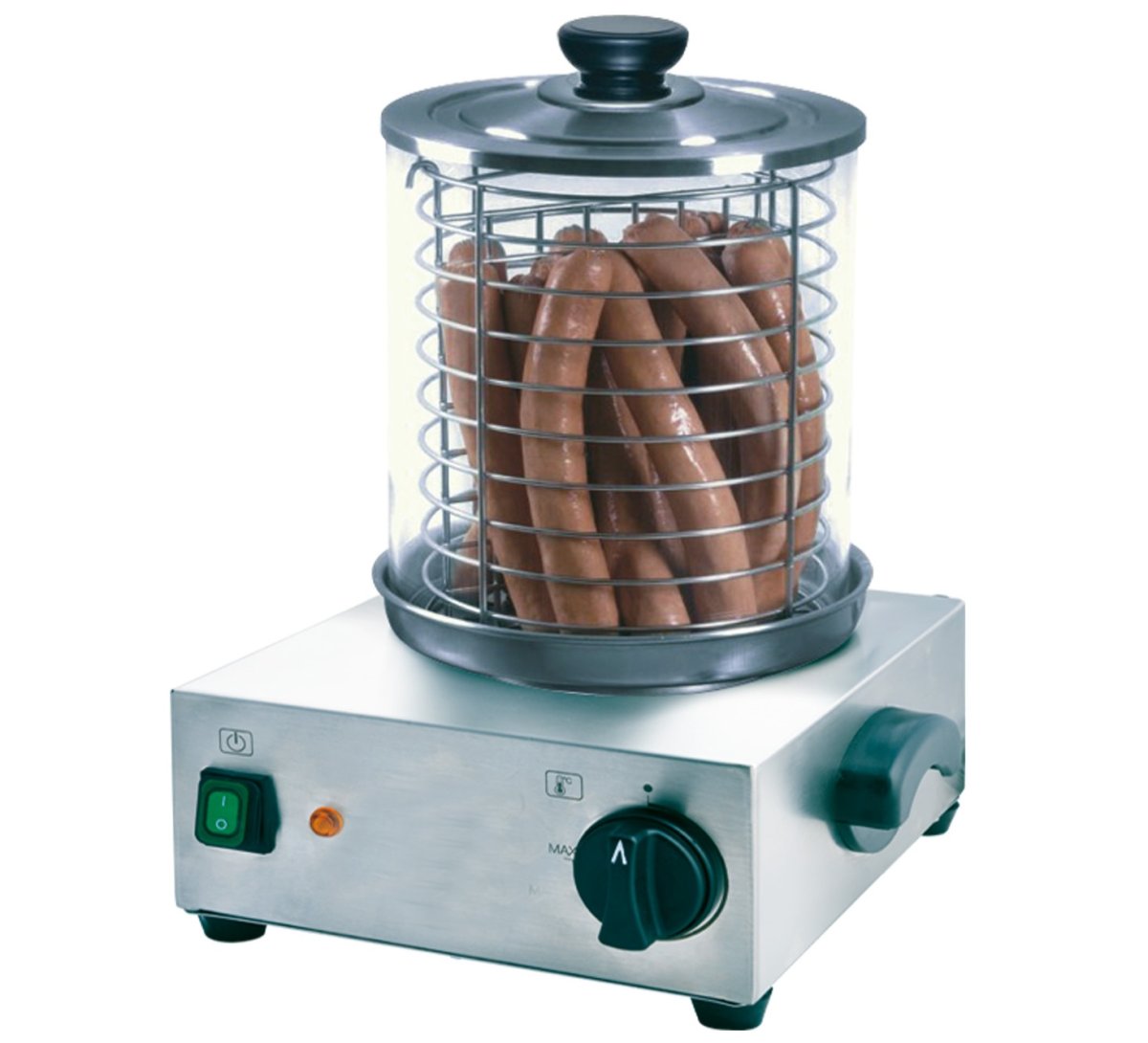 Аппарат для хот догов Rosso HHD-2 PRO предназначен для подогрева сосисок на предприятиях общественного питания и торговли. Модель работает по принципу парового нагрева.Материал корпуса: нержавеющая сталь, материал колбы: стекло, регулятор температуры.