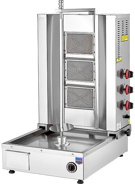 Аппарат для шаурмы Remta D 06AZ используется для обжарки большого количества различных видов мяса и птицы для приготовления начинки для шаурмы, донера и других блюд на предприятиях общественного питания и торговли. Модель оснащена системой независимой регулировки инфракрасной горелки. Корпус выполнен из нержавеющей стали AISI 304.