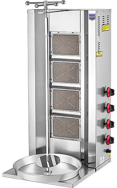 Аппарат для шаурмы Remta D 08Z используется для обжарки большого количества различных видов мяса и птицы для приготовления начинки для шаурмы, донера и других блюд на предприятиях общественного питания и торговли. Корпус выполнен из нержавеющей стали AISI 304.Система независимой регулировки каждой инфракрасной горелки.