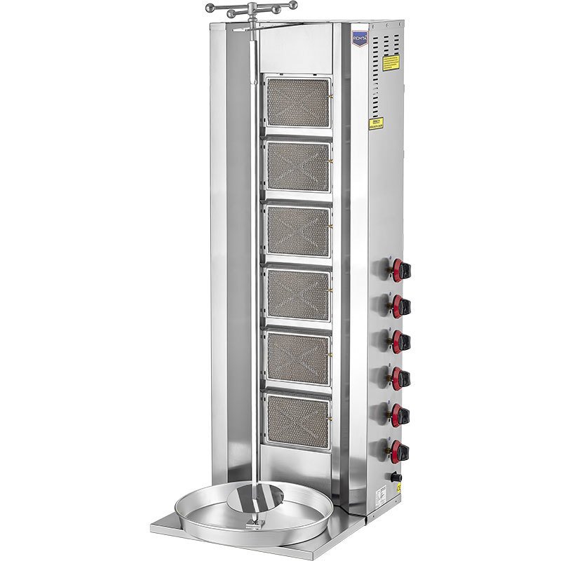 Аппарат для шаурмы Remta D 12Z используется для обжарки большого количества различных видов мяса и птицы для приготовления начинки для шаурмы, донера и других блюд на предприятиях общественного питания и торговли. Корпус выполнен из нержавеющей стали AISI 304. Система независимой регулировки каждой инфракрасной горелки.