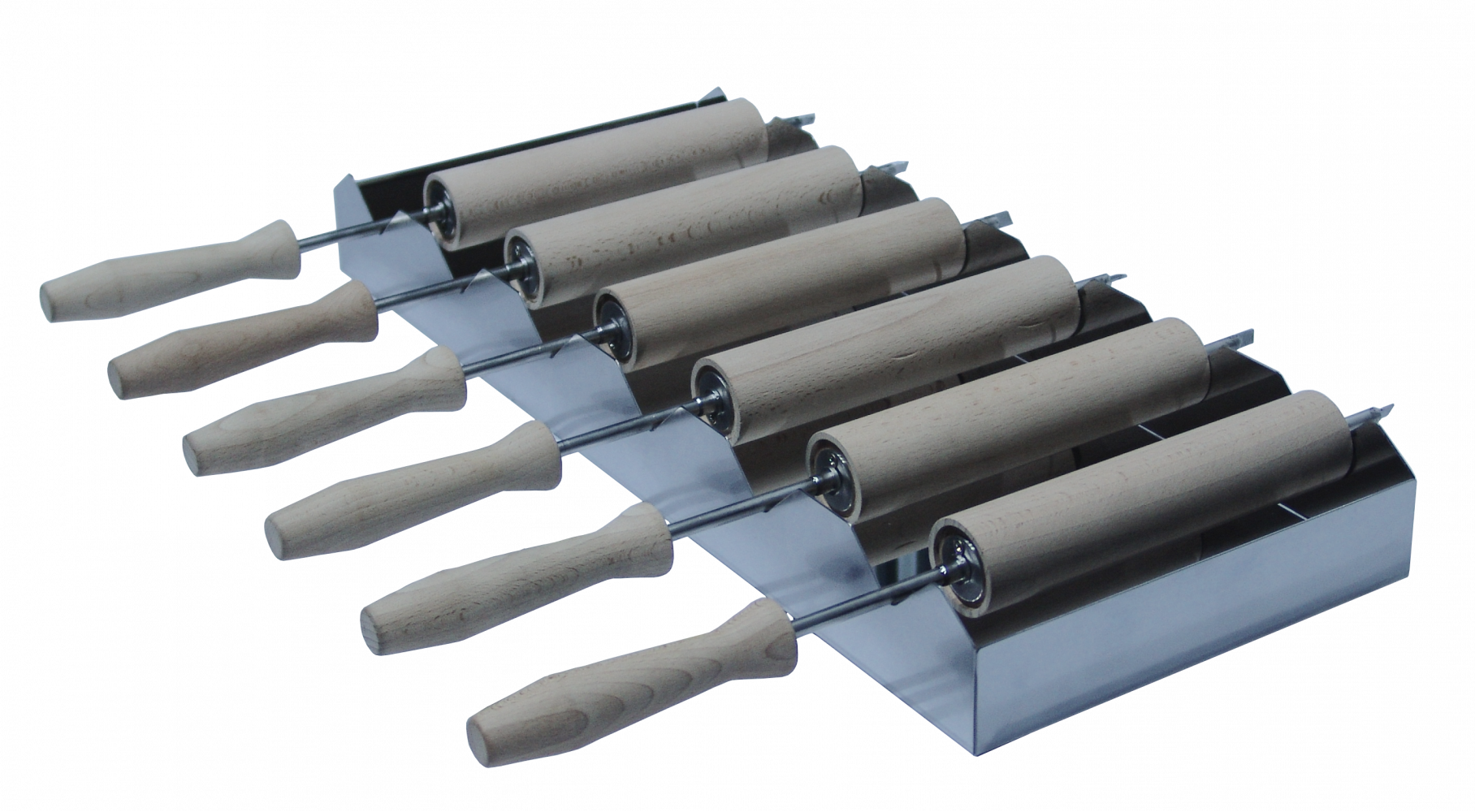 • 12 горизонтальных шампуров (металлические штыри с валиками и ручками из дерева);
