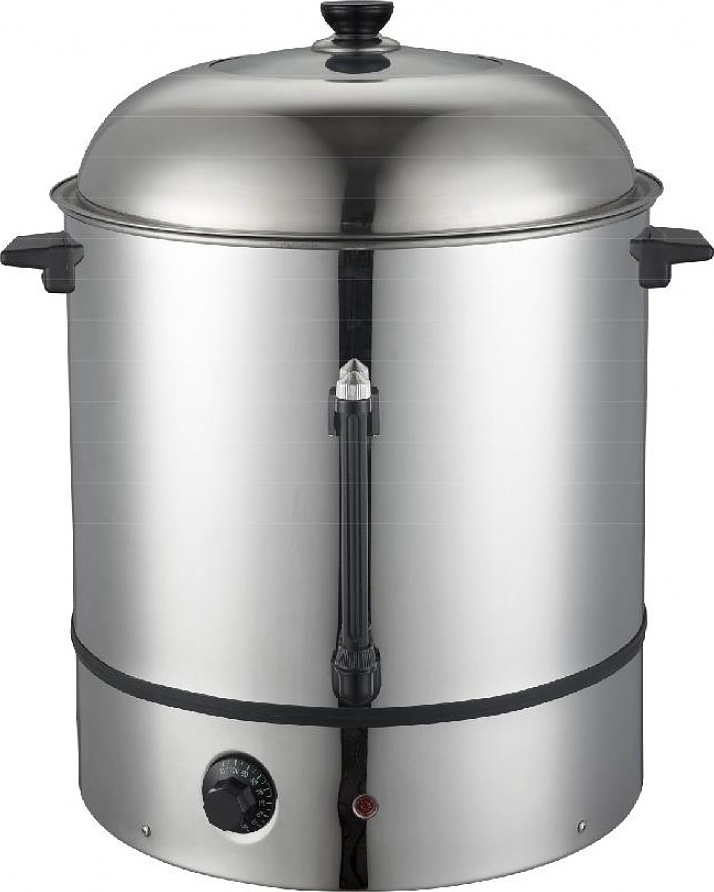 Объем рабочей емкости в данной модели – 30 л. В комплект поставки входит перфорированное сито с перегородкой для кукурузных зерен и металлическая подставка.