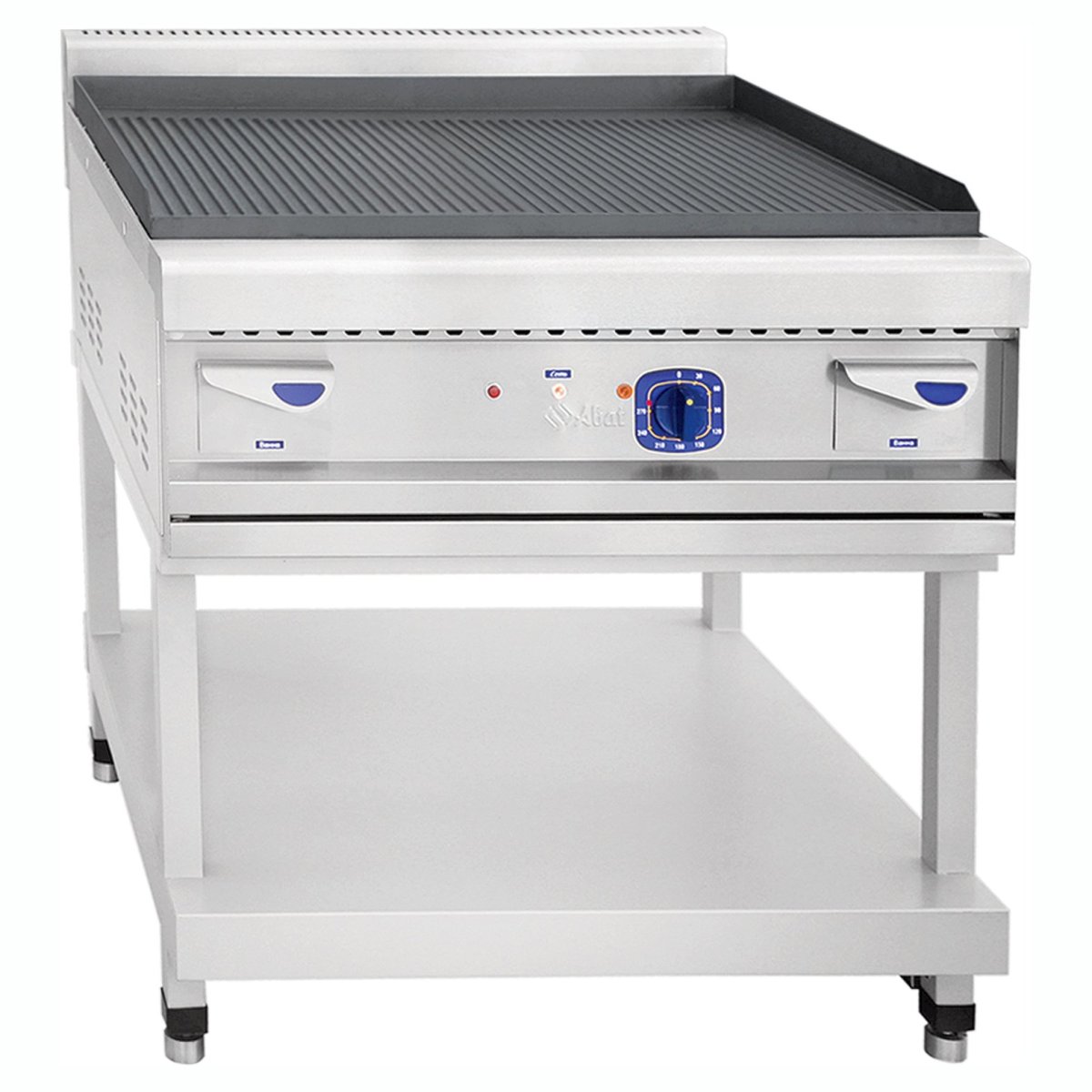 Аппарат контактной обработки Abat АКО-90/1П-С-02 (рифленая стальная поверхность) предназначен для приготовления стейка, рыбы, блинов, омлета и т.п. путем непосредственного контакта греющей поверхности с пищей. Модель оснащена контрольными лампами, 2 лотками для сбора масла, бортиком от разбрызгивания и регулируемыми по высоте ножками. Боковые, передняя и задняя поверхности выплнены из нержавеющей стали AISI 304, подставка с полкой из нержавеющей стали.