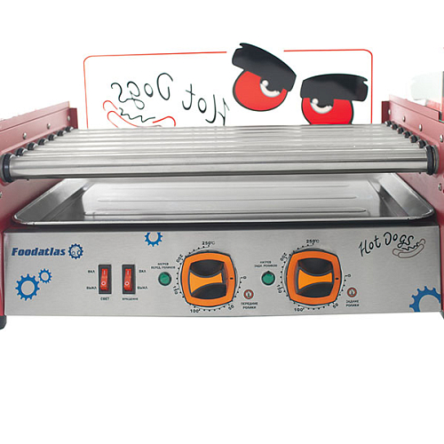 Аппарат приготовления хот-догов Foodatlas WY-007 (AR) применяется на предприятиях общественного питания и торговли для обжарки сосисок, сарделек, а также мясных и рыбных батончиков цилиндрической формы. Благодаря непрерывному вращению роликов, продукт поджаривается равномерно со всех сторон.