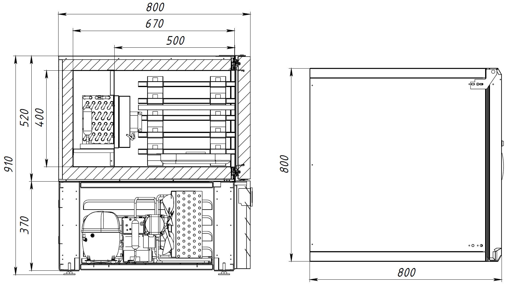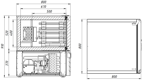 • Автоматическая оттайка при помощи ТЭНов, с системой испарения конденсата
