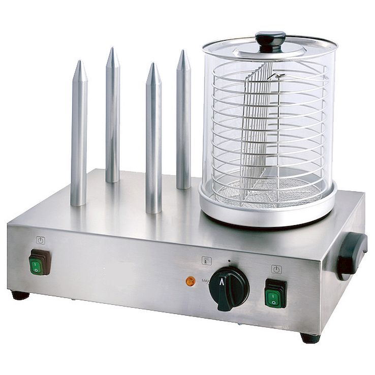 Аппарат для хот-догов Viatto HDW-04 находит применение в заведениях общественного питания (кафе, фастфуде) и торговых точках для разогрева и приготовления булочек и сосисок. Эта модель имеет четыре штыря для булочек диаметром 15 мм и высотой 194 мм, контейнер из закалённого стекла 200х240 мм с корзиной и крышкой.