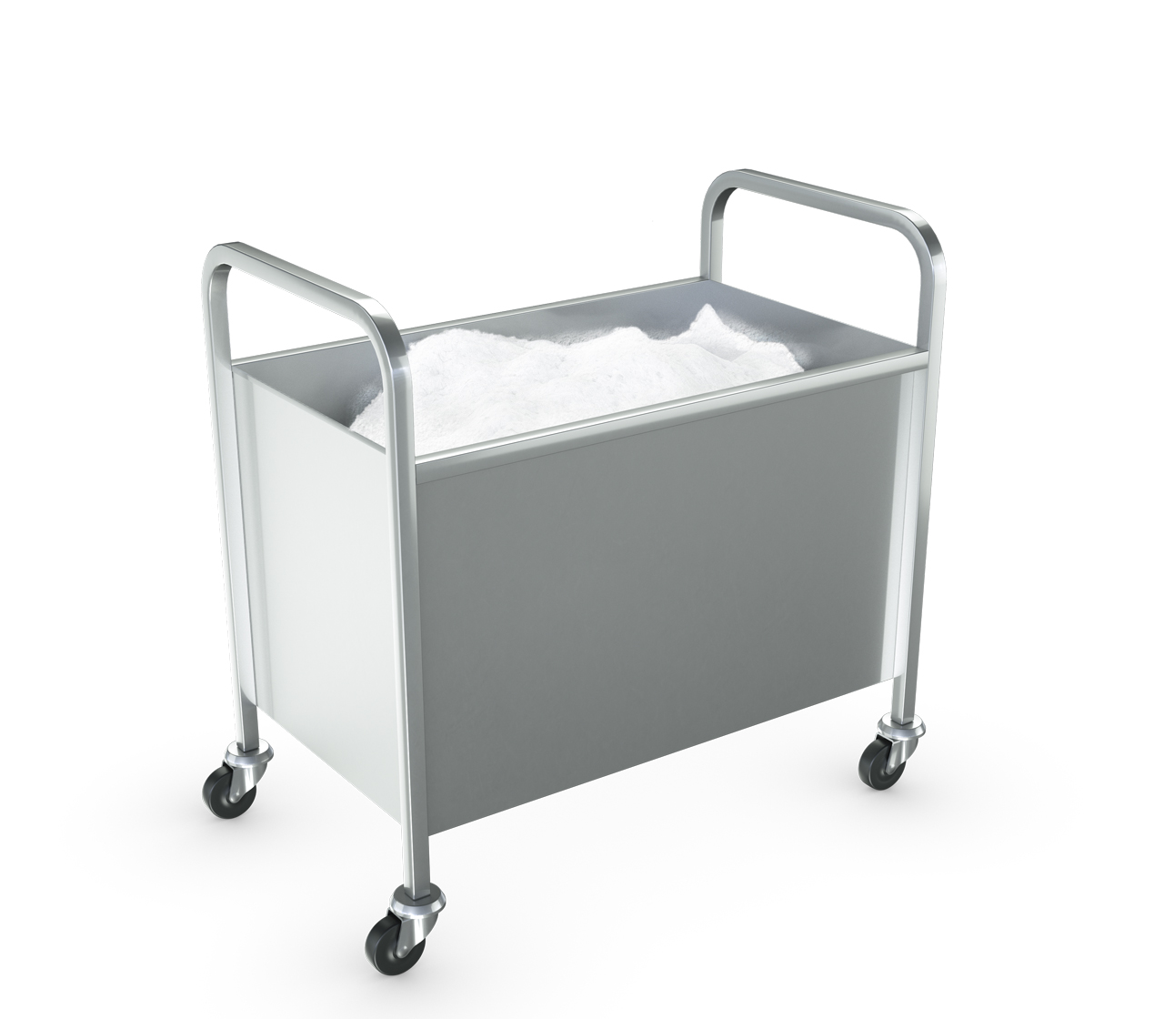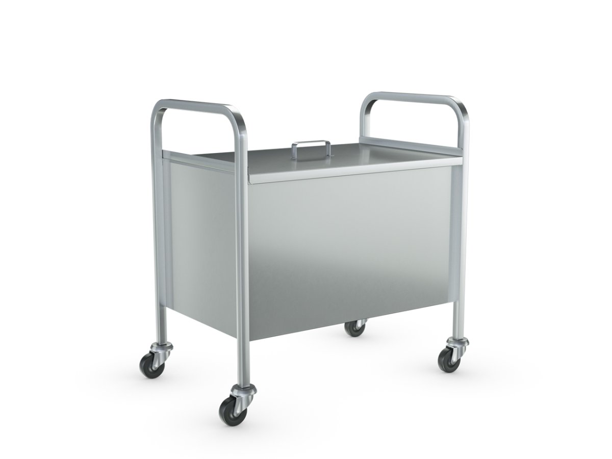 Тележка для муки Atesy ТМ-Л-100-02 (ТМ-100) имеет сварную конструкцию. Рамы тележки изготовлены из нержавеющей трубы AISI 304 сечением 25х25 мм. К рамам приварен герметичный бункер из нержавеющей стали AISI 304 объемом 140 литров. Сверху бункер накрыт нержавеющей крышкой. Грузоподъемность тележки составляет 100 кг. Тележка снабжена четырьмя колесами диаметром 75 мм, два из которых оснащены тормозом.