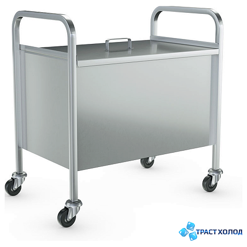 Тележка для овощей Атеси ТО-Л-100-02 (ТО-100)  предназначена для накопления полностью очищенных на столах овощных СО-1/1200/800 или СО-2/1500/800 овощей и транспортировки их к месту использования. Конструкция: сварная (сталь AISI304); 1 колесная опора с тормозом; Крышка поставляется в комплекте; Размер бункера: 800х500х450 мм. Дно тележки оснащено отверстием для слива воды
