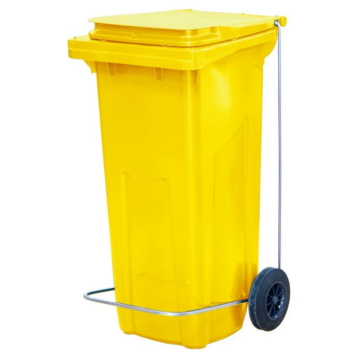 Бак для мусора 120 л. 55*45*96 см. желтый, с крышкой на колёсах с педалью /1/