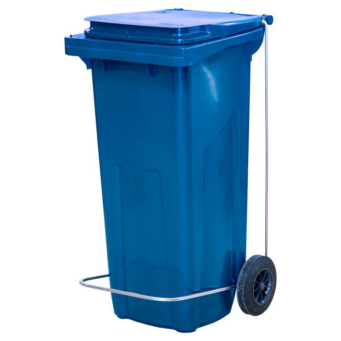 Бак для мусора 120 л. 55*45*96 см. синий, с крышкой на колёсах с педалью /1/