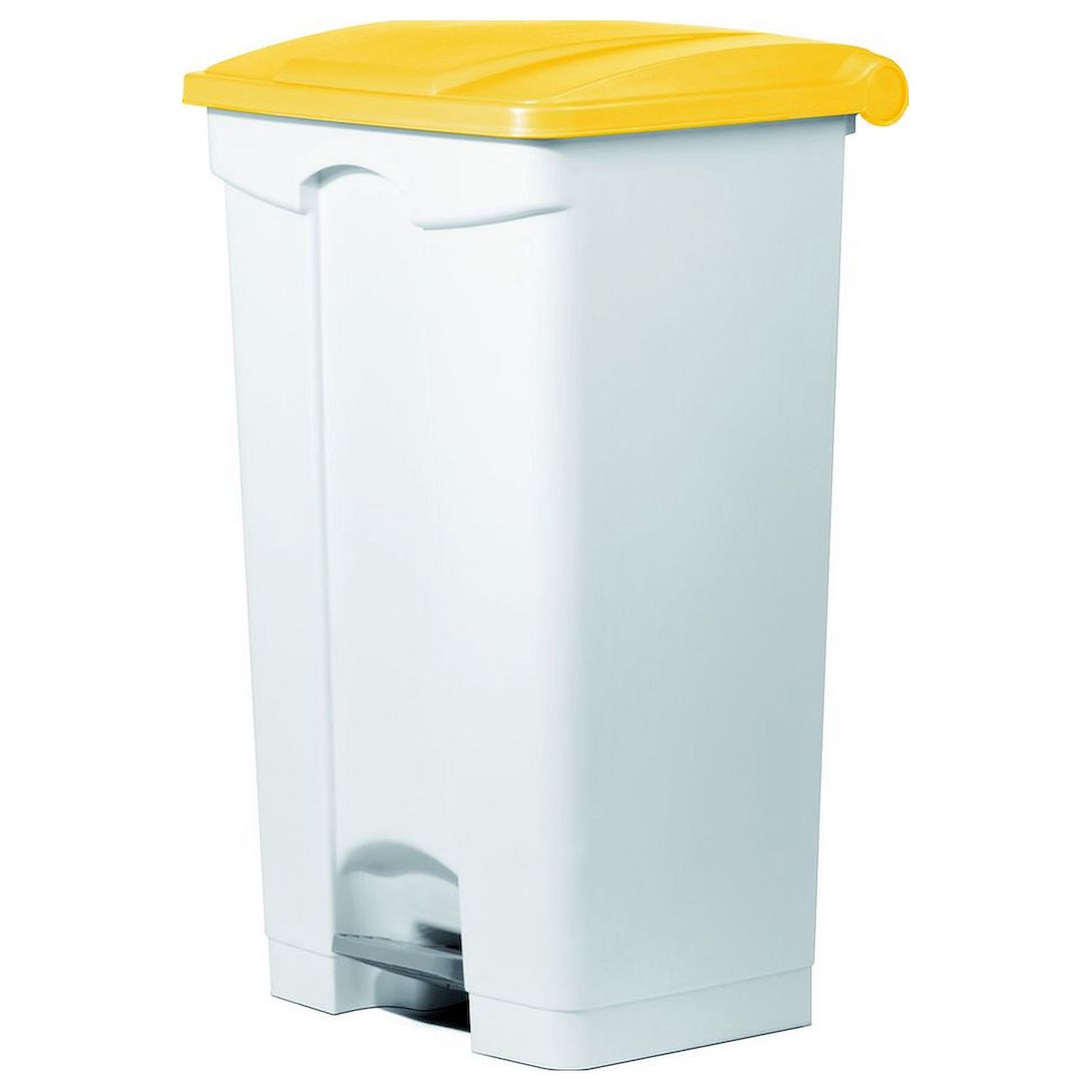 Бак для мусора 90 л с педалью, белый с желтой крышкой на колесах Still Casa /1/3/