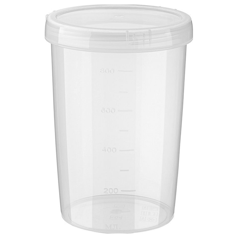 Прозрачный корпус и крышка позволяют видеть содержимое, а мерная шкала на корпусе поможет определить объем продукта.