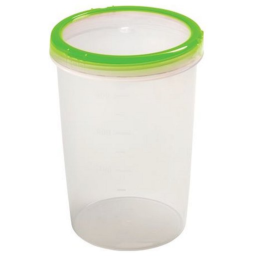 Прозрачный корпус и крышка позволяют видеть содержимое, а мерная шкала на корпусе поможет определить объем продукта.
