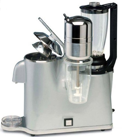 Барный комбайн Vema GR 2021 используется на предприятиях общественного питания и торговли, объединяет в себе функции блендера, соковыжималки и миксера для молочных коктейлей. Электромеханическая система управления и 2-х скоростной двигатель блендера.