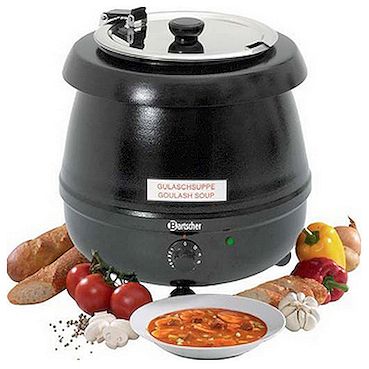 Мармит-супница Bartscher 100.054 – позволит сохранить первые блюда на линии раздачи в разогретом состоянии длительное время. Принципы работы - термос и подогреватель. Корпус и крышка Bartscher Partytopf 100.054 изготовлены из нержавеющей стали. Корпус крашенный в черный цвет. Крышка откидная с вырезом для ковша. Внутри помещается съемная емкость объемом 9,0 литров. Термостат регулирует уровень нагрева -+30...+95 С.В комплект входят 8 магнитов с названиями супов.