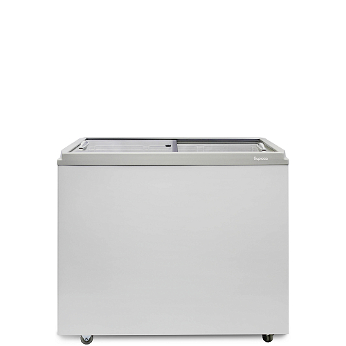 Морозильный ларь со стеклянной крышкой имеет закаленное стекло с теплоотражающим покрытием, защищающее от влияния внешних температур.