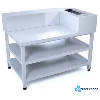 Блинная станция ТТМ БСФ-120/7П с открытым стендом предназначена для приготовления и раздачи блинов в заведениях общественного питания (кафе, закусочных, блинных). Данное оборудование имеет две полки, нишу размером 900х470х200 мм под блинный аппарат с двумя жарочными поверхностями, гнёзда для ёмкостей под масло GN1/9-150 и тесто GN1/3-150, а также укомплектовано гнездом со специальной ёмкостью 210х45х90 мм под палочку для разравнивания теста.