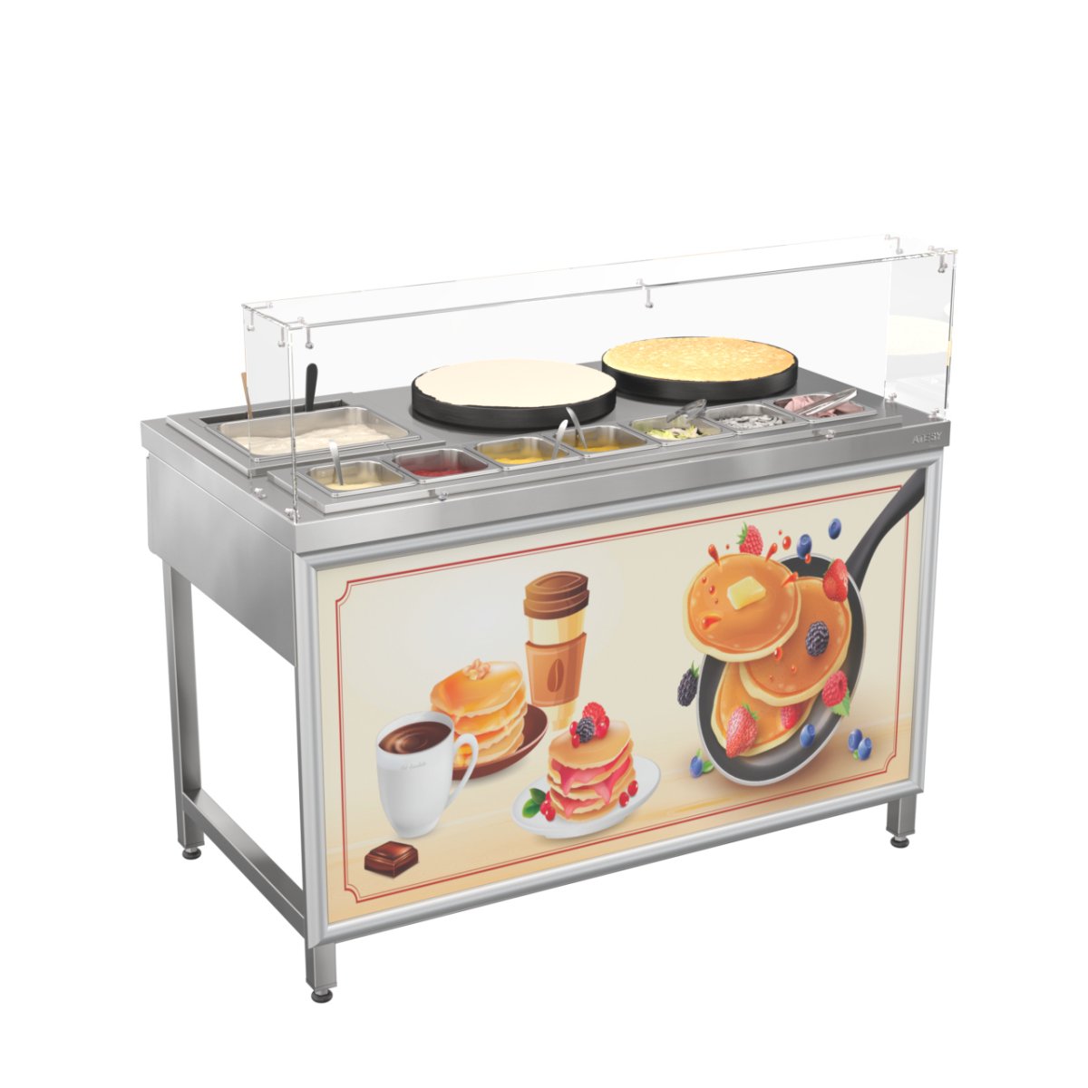 Блинная станция Atesy ЛАКОМКА БС-2.400-1350.750-02 устанавливается на предприятиях общественного питания и торговли для приготовления и раздачи блинов с начинкой.