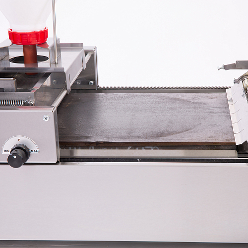 Регулировка зазора между кареткой и жарочной поверхностью позволяет изготавливать блины массой от 35г из теста разной плотности.