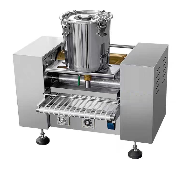 Машина снабжена таймером, регулирующим периодичность нанесения теста на жарочный барабан и термостатом, для регулировки и автоматического поддержания температуры поверхности барабана.