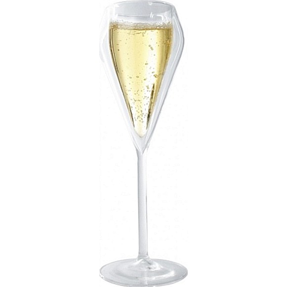Элегантные прозрачные бокалы для шампанского с двойными стенками , которые сохраняют жидкость холодной в течение длительного периода времени, а внешнее стекло остается безопасным на ощупь.