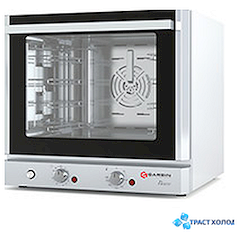 Печь конвекционная с пароувлажнением Garbin Bravo-M  расчитана на 4 уровня 460х330 мм или GN2/3 (в комплекте 2 противня 460х330),  механическая панель управления, ручное пароувлажнение, механический таймер, расстояние между уровнями 80 мм, дверца открывается вниз  (аналог модели 43DX UMI).