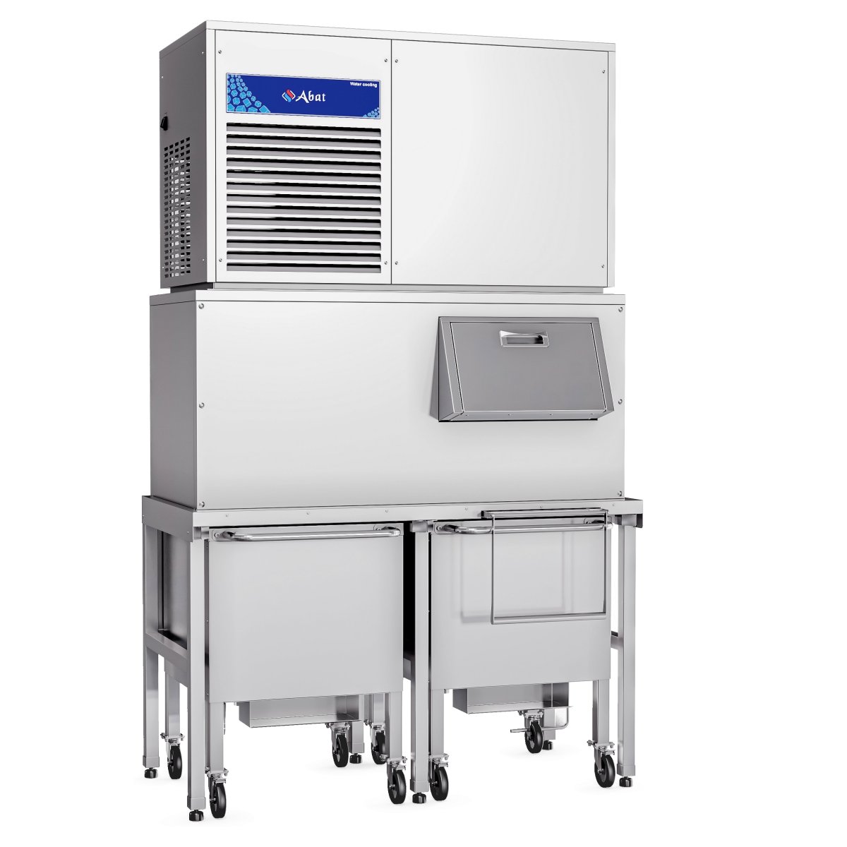 Бункер Abat БН-2-70-90 используется совместно с льдогенераторами ЛГ-250, ЛГ-400, ЛГ-620 и ЛГ-1200 для кратковременного хранения чешуйчатого льда и его транспортировки к местам применения на предприятиях общественного питания и торговли. Модель оснащена задвижкой, предотвращающей потерю льда при смене бункеров во время работы, краном для слива воды, полочкой для совка, выгружным технологическим люком для извлечения небольших порций льда и проведения санитарной обработки изделия и регулируемыми по высоте ножками. Конструкция выполнена из высококачественной нержавеющей стали. Изоляция стенок и полости стола выполнена методом заливки пенополиуретаном.