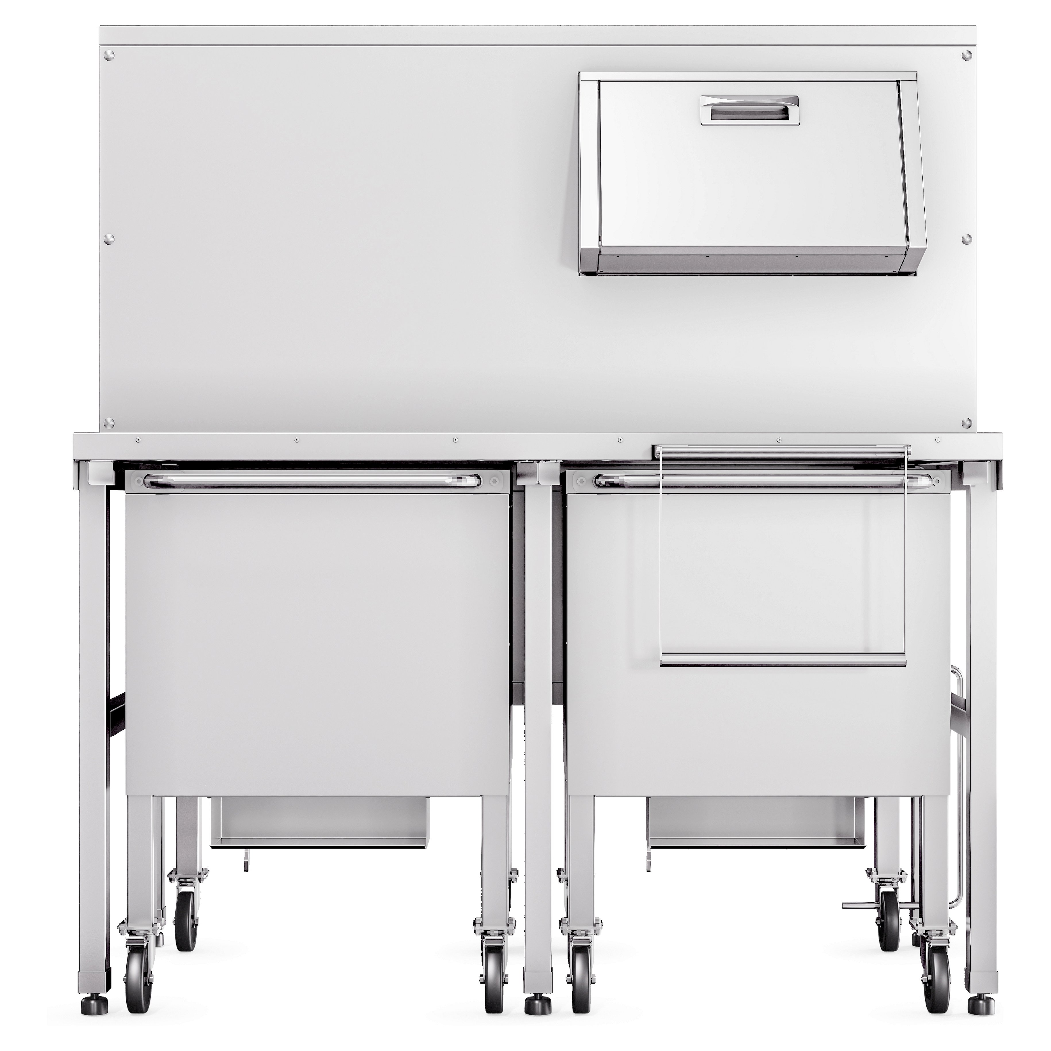 • Вместимость чешуйчатого льда в одном подкатном бункере: 70 кг
