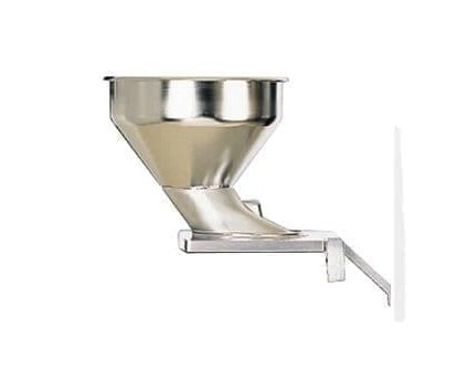 Данный бункер полностью изготовлен из высококачественной нержавеющей стали, что обеспечивает высокую надежность оборудования. Благодаря простой конструкции все детали, находящиеся в контакте с продуктами, легко разбираются для идеальной санитарной обработки. Для удобства и компактности воронка наклоняется вдоль линии корпуса.