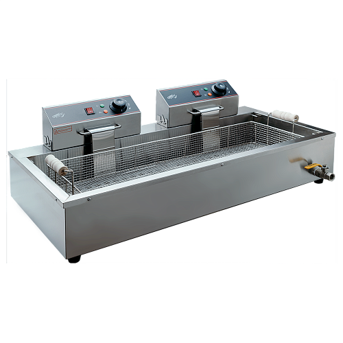 Чебуречница Crazy Pan CP-BEF26 применяется на предприятиях общественного питания и торговли для приготовления различных продуктов в большом количестве масла. Модель оснащена 2 группами нагрева, 2 терморегуляторами, 2 боковыми поддонами, объемной съемной корзиной и шипцами. Корпус выполнен из нержавеющей стали.