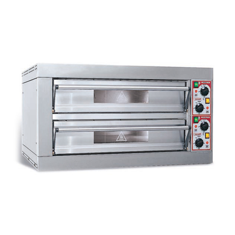 Подовая печь для пиццы Zanolli CIT EP 65 4+4/MC имеет две камеры мощностью по 4,2 кВт. Модель предназначена для использования на предприятиях общественного питания и в крупных торговых центрах. В каждой камере печи можно разместить по одному противню 600х400 мм. В комплект поставки входит стенд CIT EP 65/BM 100.