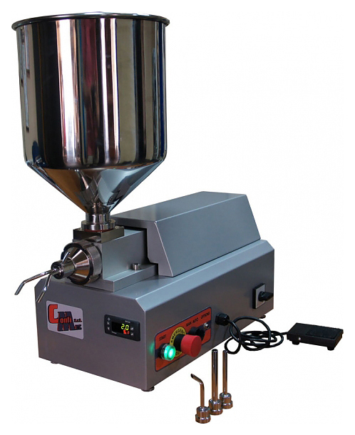 Шприц-дозатор Confimec RP-15ST предназначен для наполнения начинкой пончиков, эклеров, трубочек "канноли", бриошей (круассанов) и пр. в пекарнях и кондитерских, на предприятиях пищевой промышленности и общественного питания. Модель оснащена таймером, регулируемой дозировкой начинки вручную и защитными приспособлениями согласно требованиям техники безопасности.