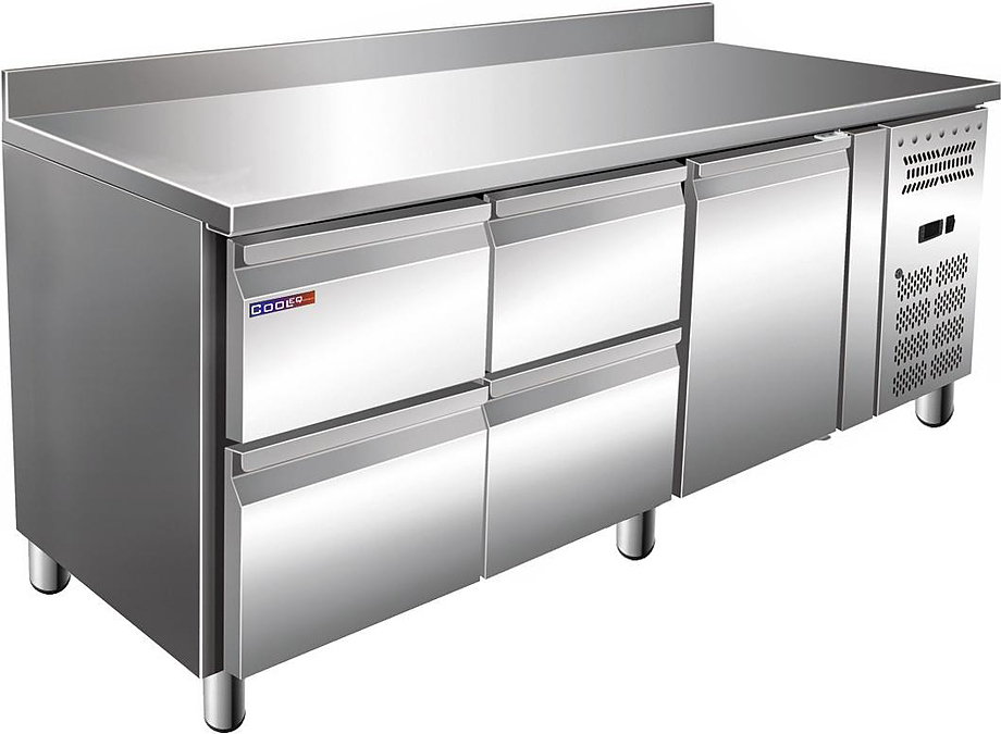 Стол охлаждаемый Cooleq GN3240TN 4 ящика+1 дверь предназначен для раскатки теста и обработки ингредиентов для приготовления блюд, охлаждения и кратковременного хранения продуктов и напитков на предприятиях общественного питания и торговли. Модель оснащена 1 полкой и 1 парой направляющих GN 1/1 в каждой секции. Корпус выполнен из нержавеющей стали.